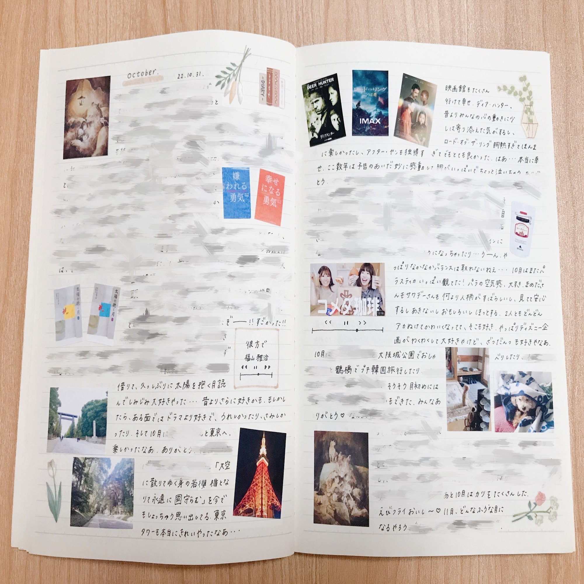 ただ、印刷ではなかなか難しい、マステやシールでの自由な飾りつけが楽しかったし、ふり返ってもお気に入りのページが多いです。
