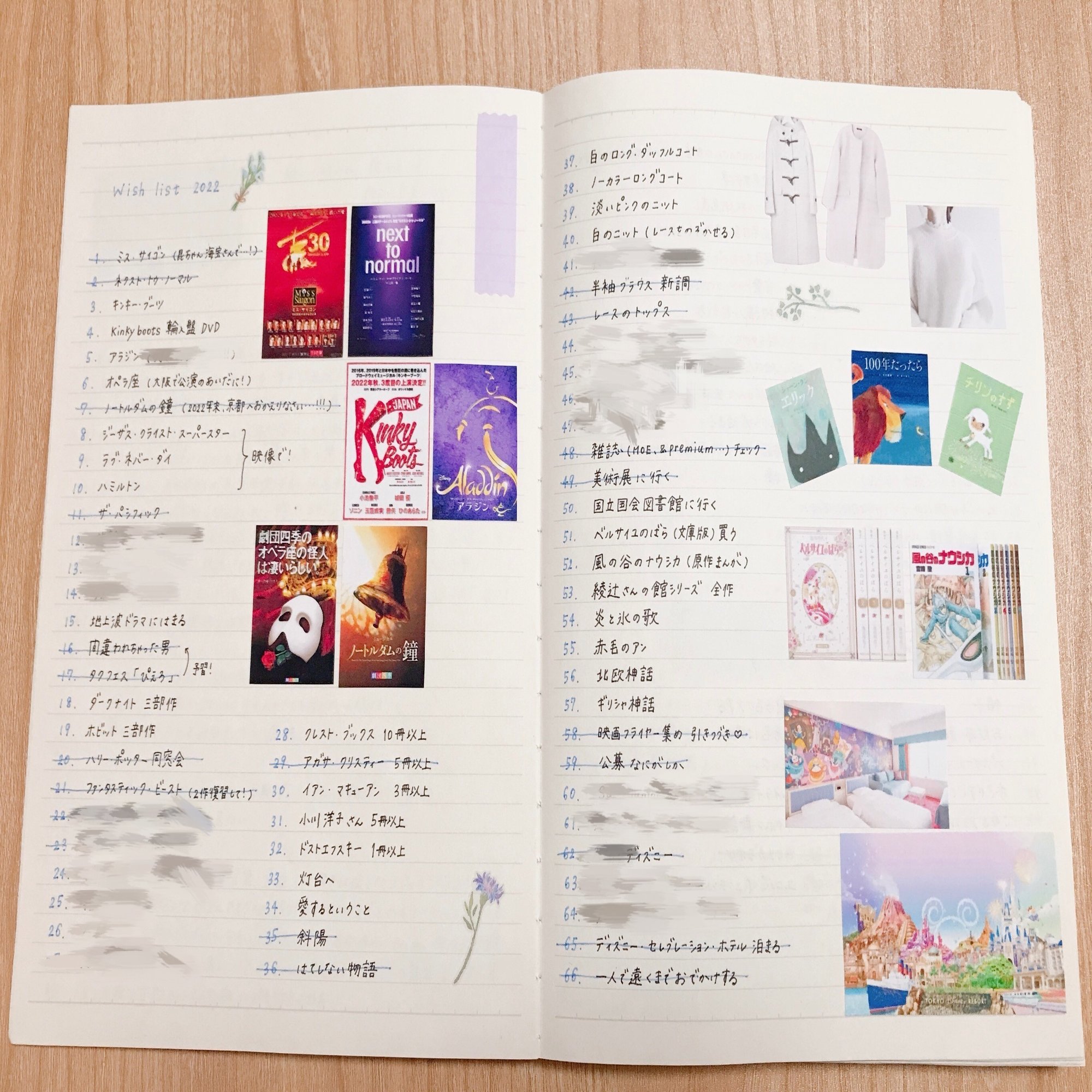 他にも、旅行の日記、読みたい本のリスト、観たい映画や舞台のリスト、欲しい物のリスト…… などなど。とにかく書いて楽しい、見返しても楽しいことなら、なんでも書いています🌼