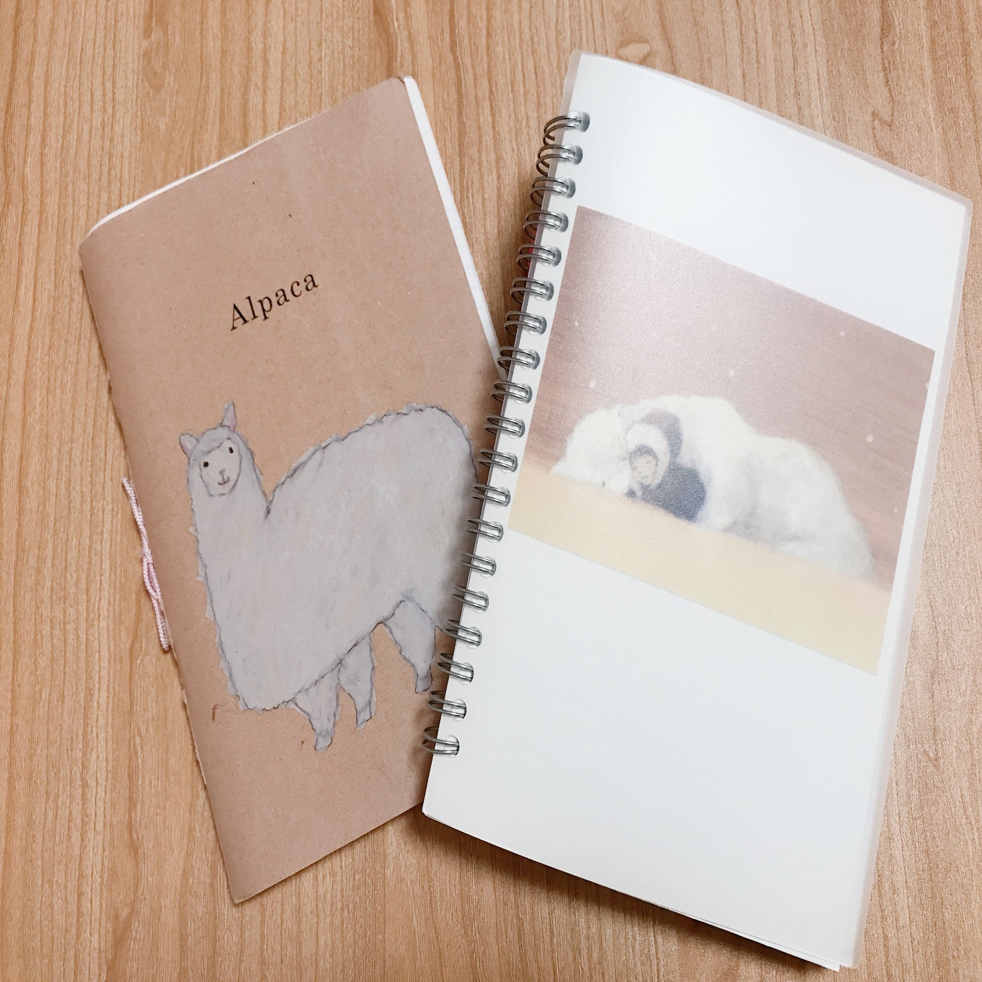 先代のアルパカノートは、もともと普通の綴じノートだったのですが、表紙と中身が分離してしまって紐で結びなおした分、愛着があります🤭