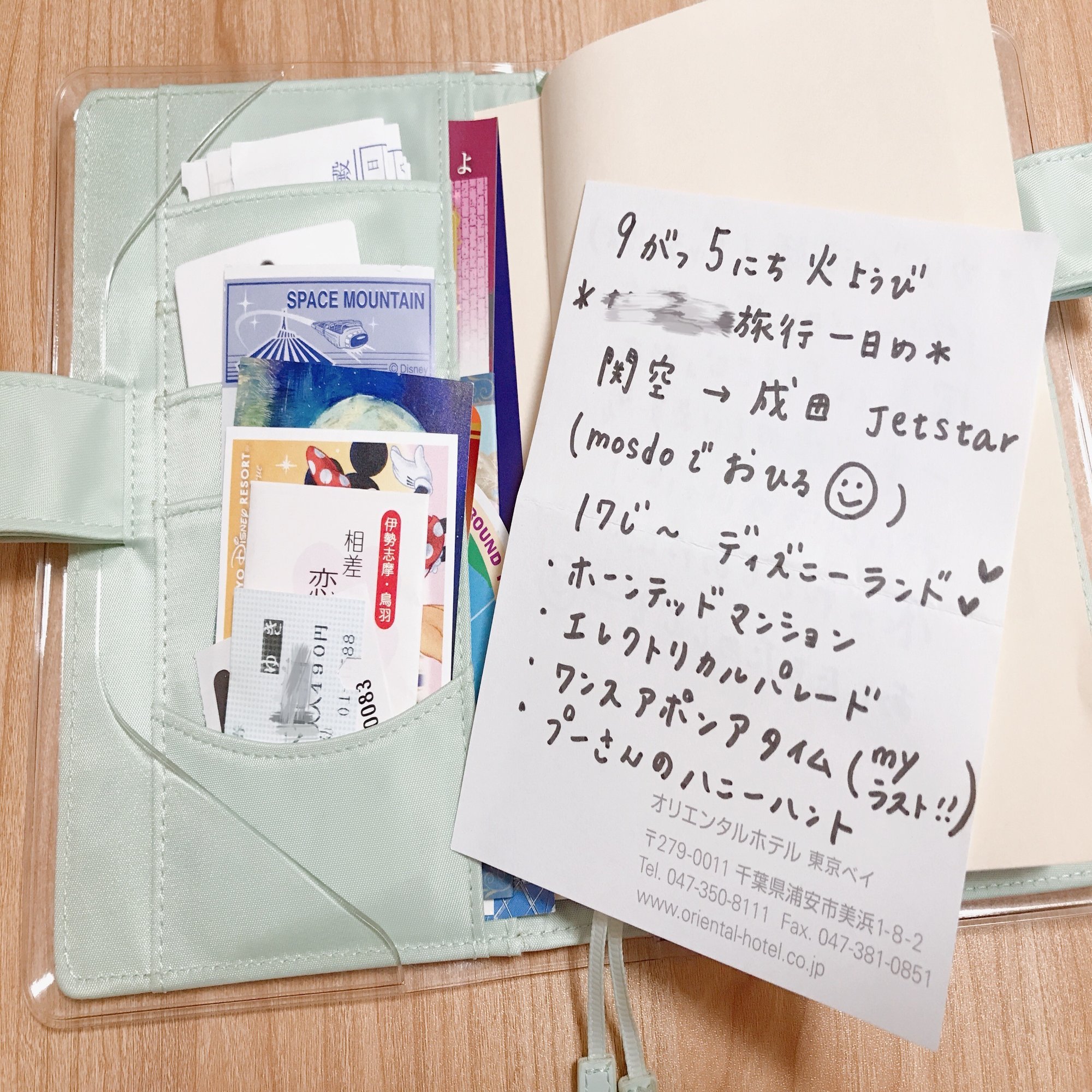 旅先のホテルで(たしか友だちがお風呂に入ってるあいだに)書いたメモ。裏に「明日もめいっぱい楽しもう〜」と書かれていて、なんだかその瞬間のわくわくや幸福感のようなものが詰まっていました。