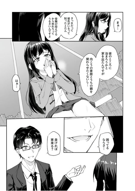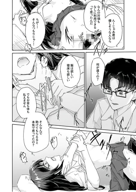 【エロ漫画】親とケンカして家出した巨乳JKが公園で声をかけてきたサラリーマンの家に行ったら押し倒されて無理やりキスされてレイプされちゃう・・・