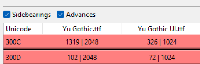 halt table even though the glyph advances are different.