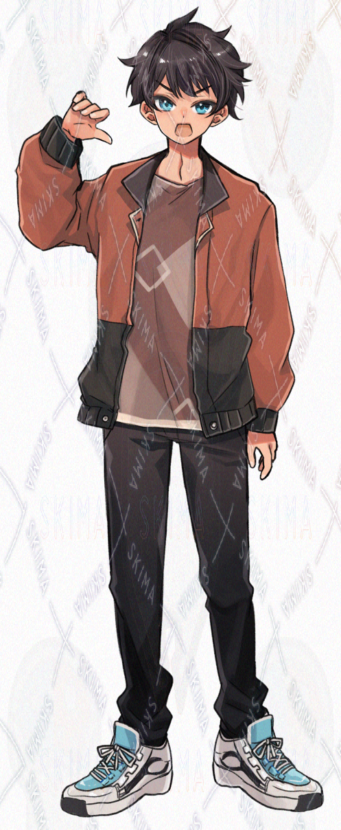 男性/少年/黒髪/青・水色目/シューズ/ズボン/現代日本/私服
