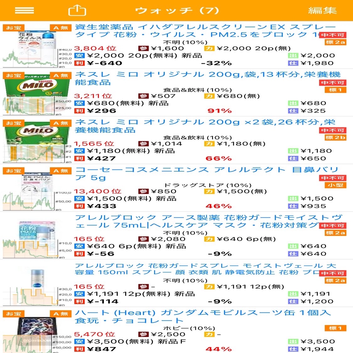 ウォッチリストに入れた商品は毎日動向を追います。
