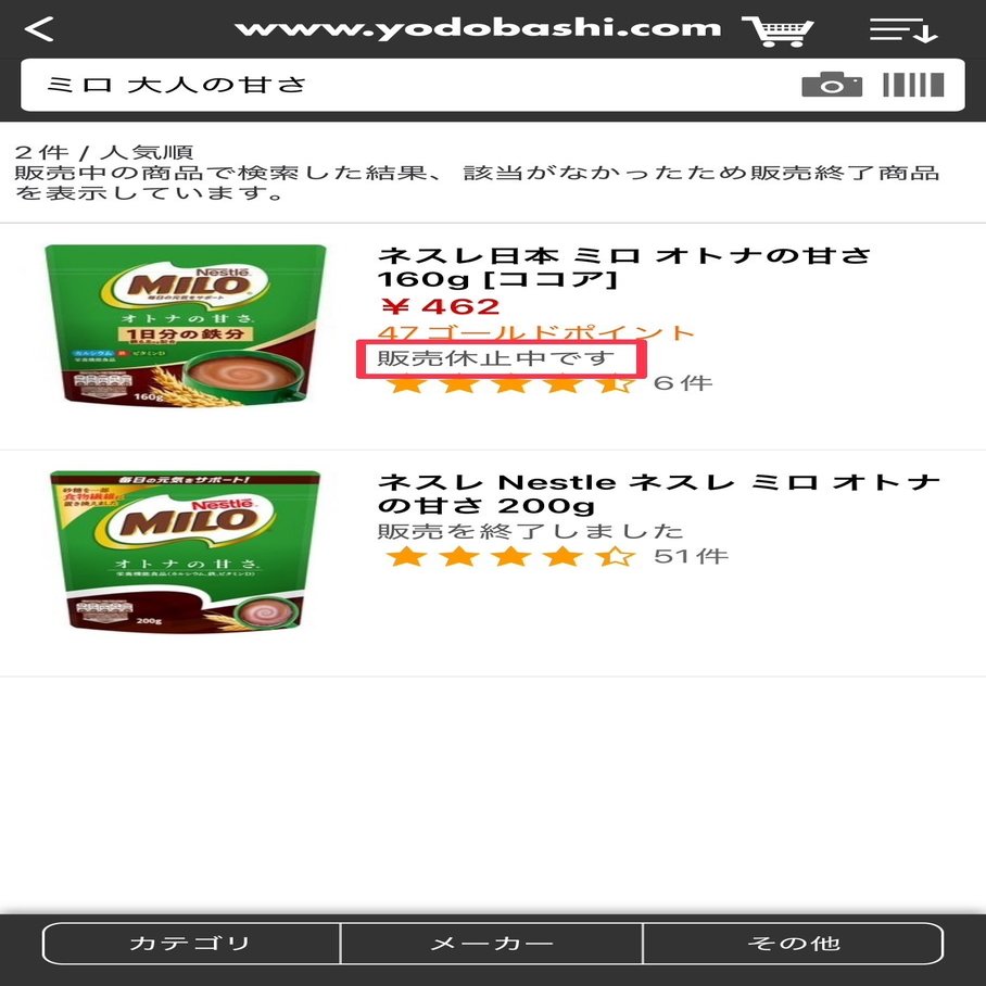 ・そのブランドの他の商品も販売休止かチェック