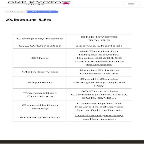 One Kyoto toursはcompany nameとかかげているので会社かな?と手っ取り早く法人番号検索して
