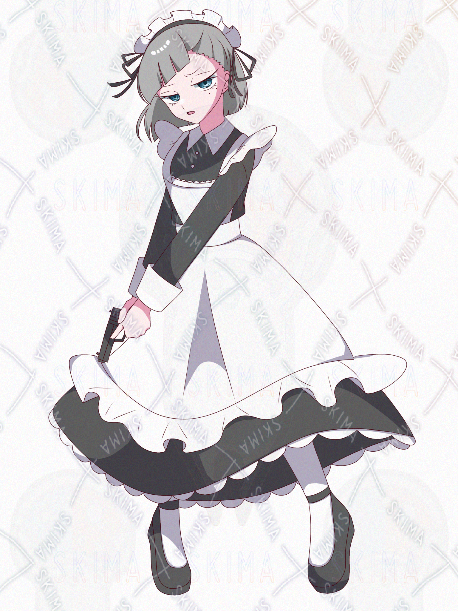 銃を持ったメイド服の女の子