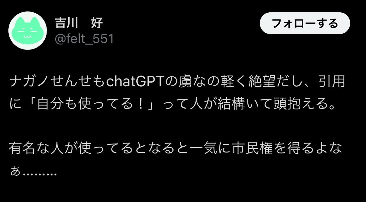 むしろチャットGPTもあかんと言ってるならマシやろ