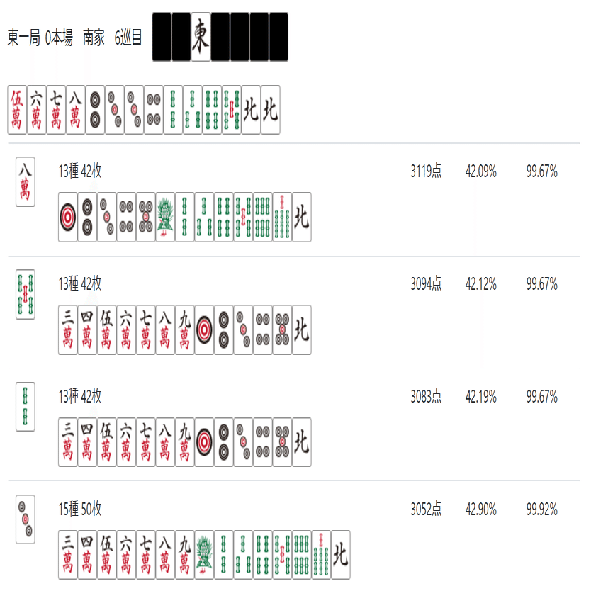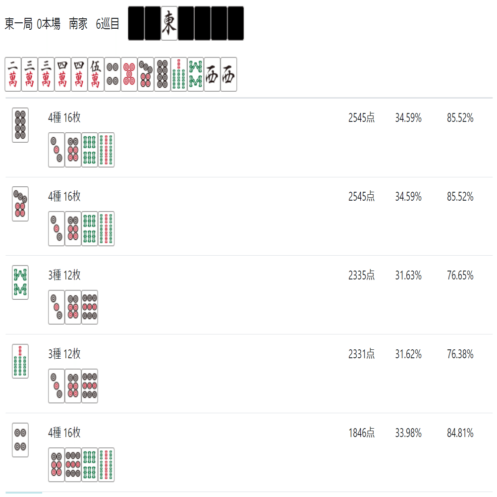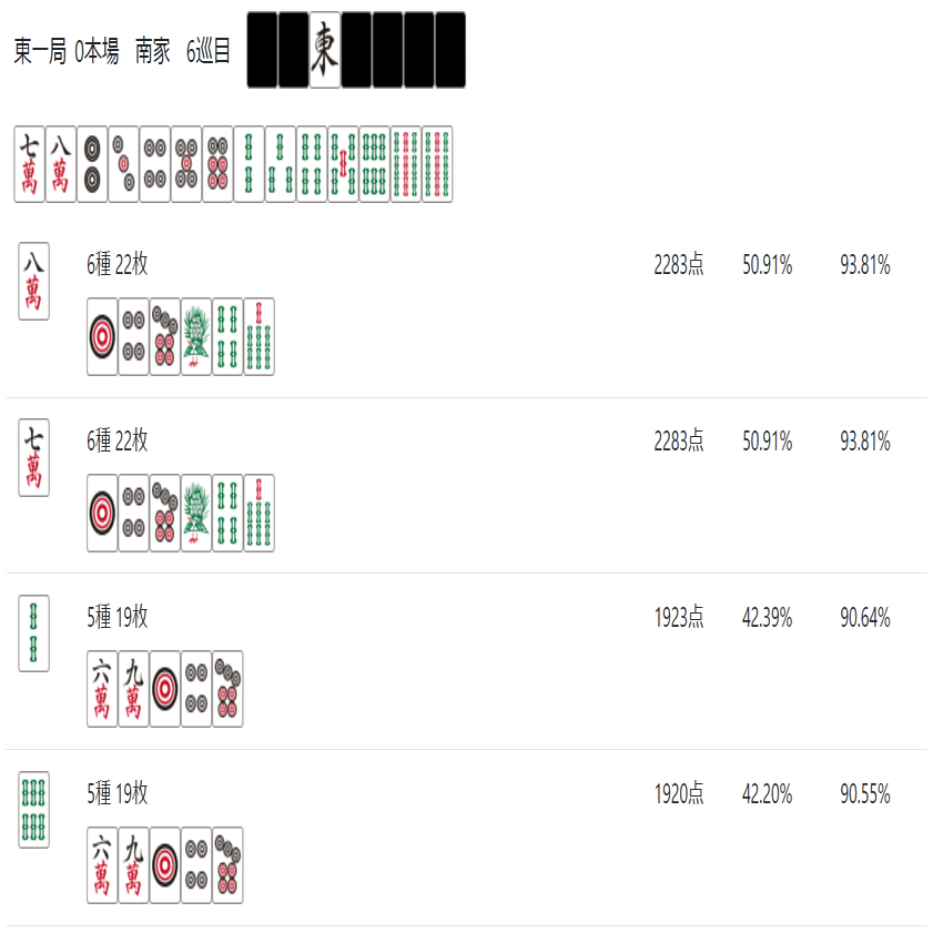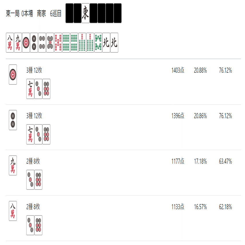 次のnoteでは「雀魂 玉の間」「天鳳 特上卓」あたりで必要な牌効率について記述したいと思う。