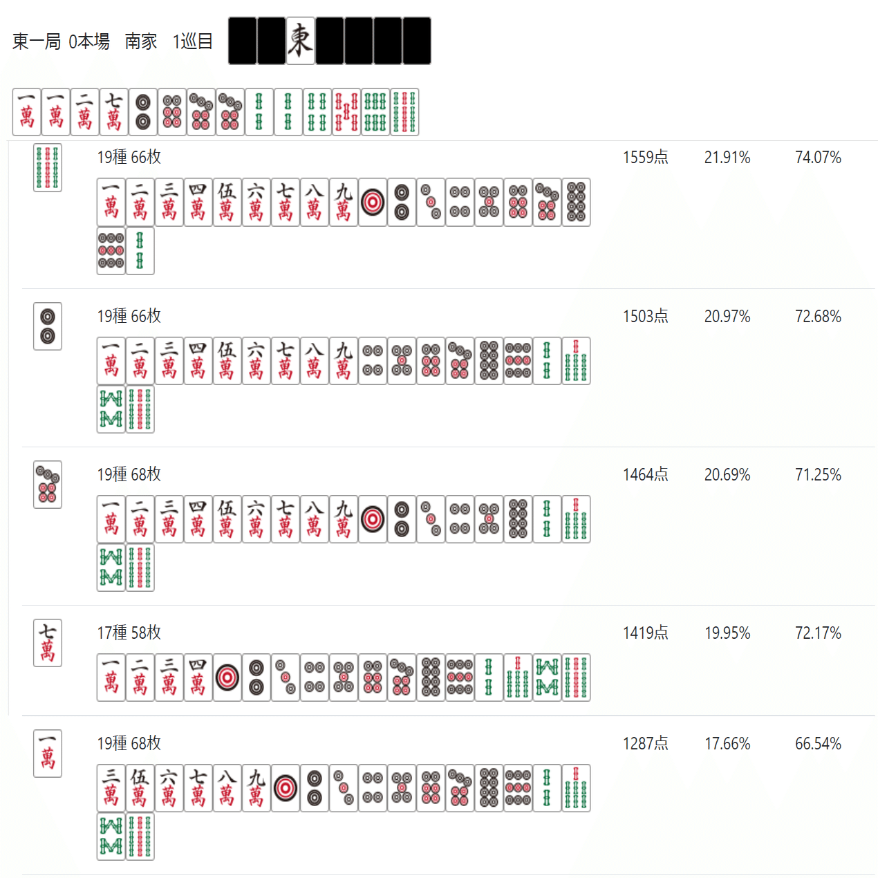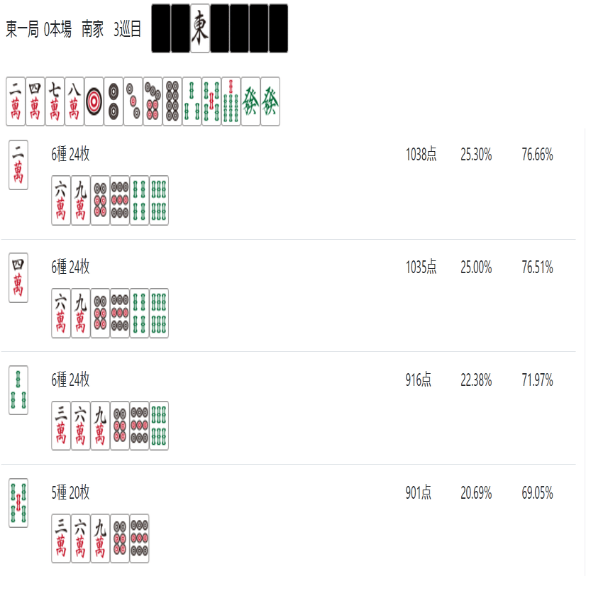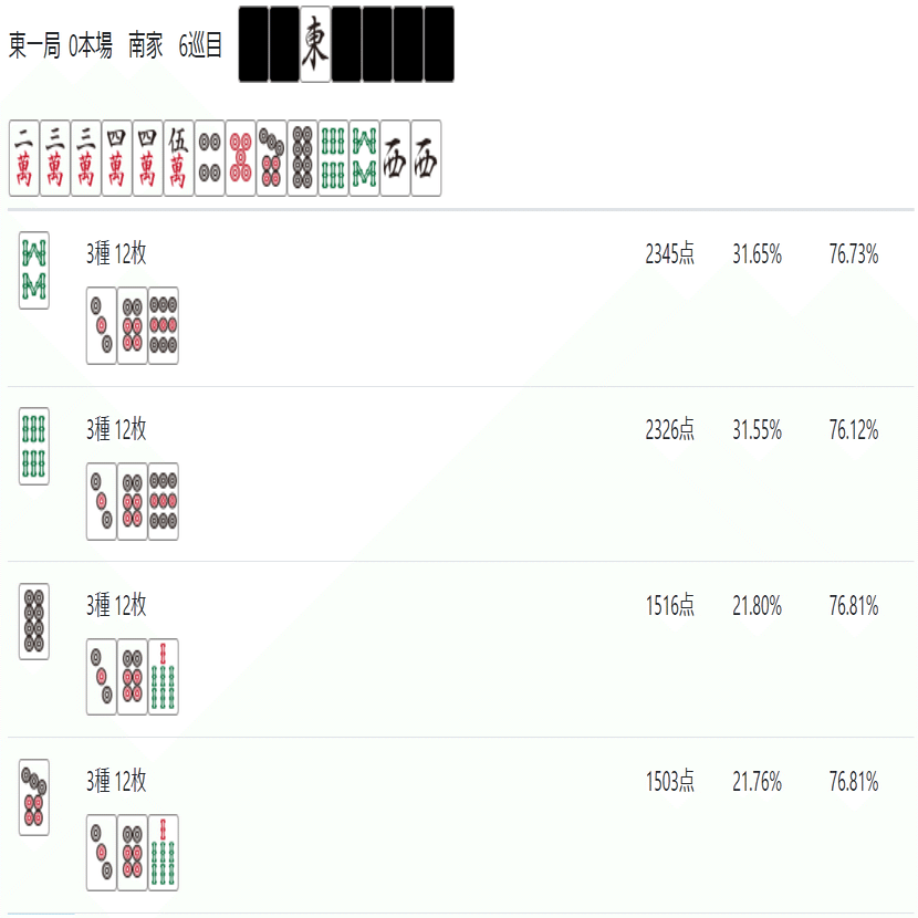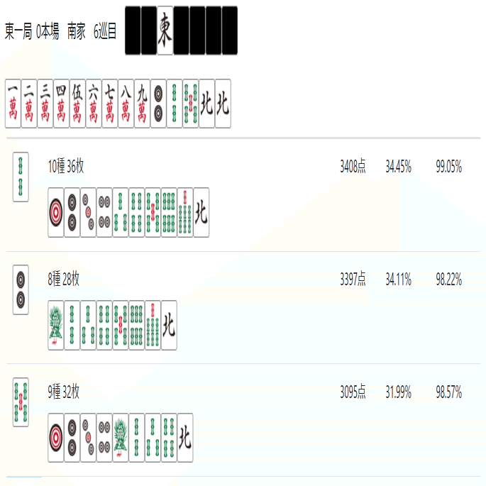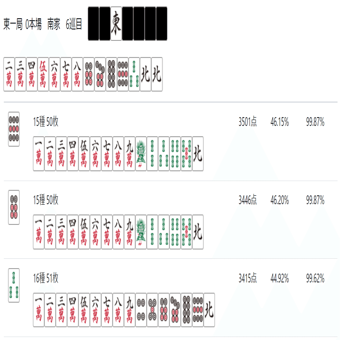 次のnoteでは「雀魂 玉の間」「天鳳 特上卓」あたりで必要な牌効率について記述したいと思う。