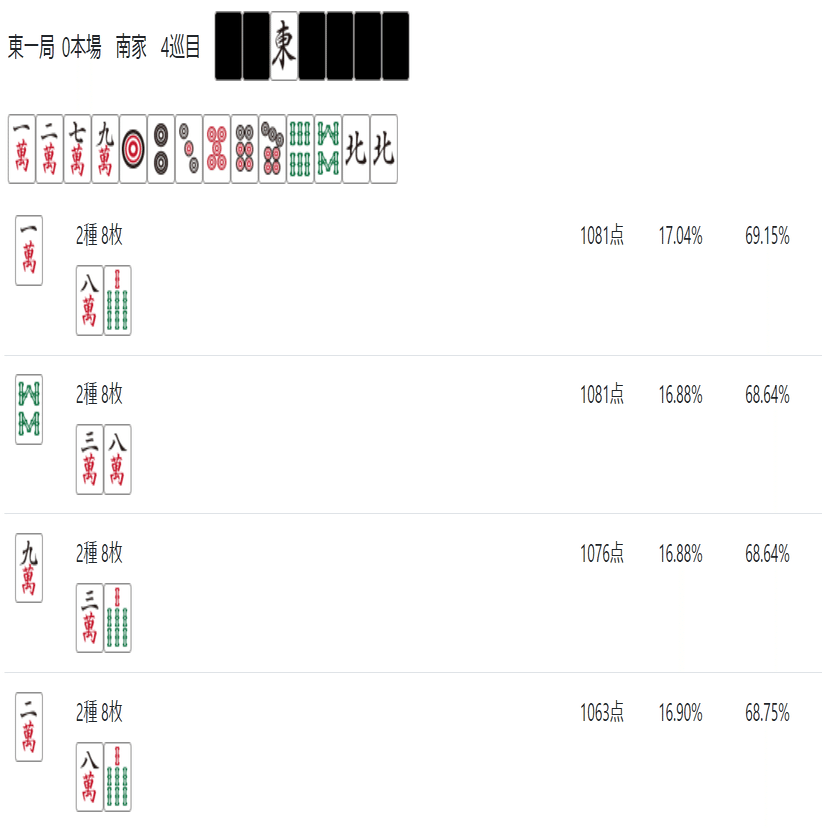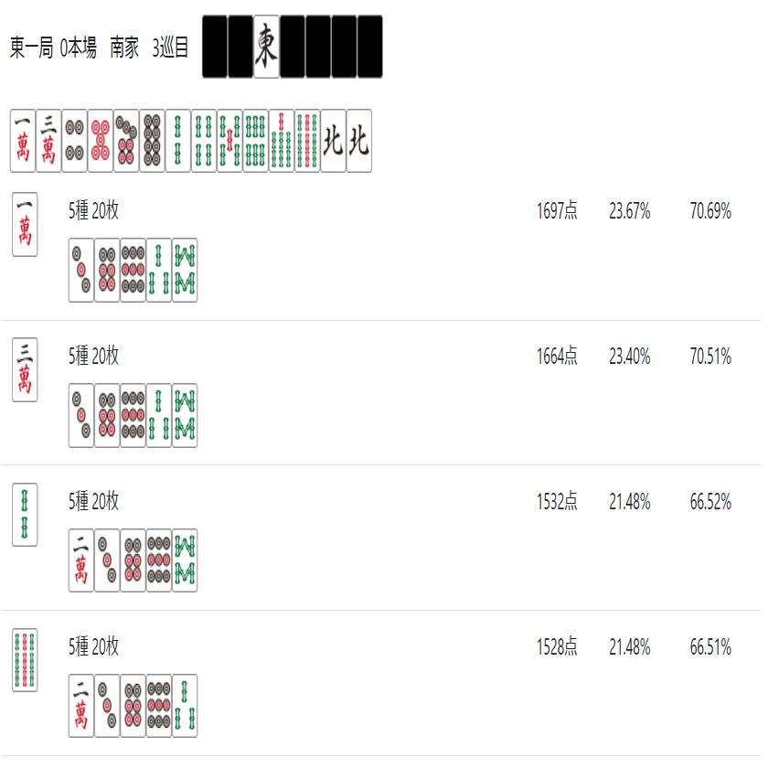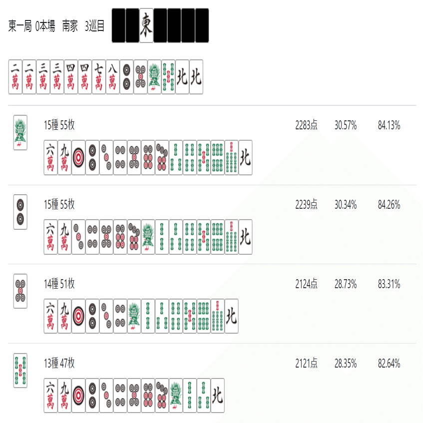 牌効率について現時点での到達点として残す(ここから先、一般的な用語については詳しく説明しないので自分で調べてほしい)