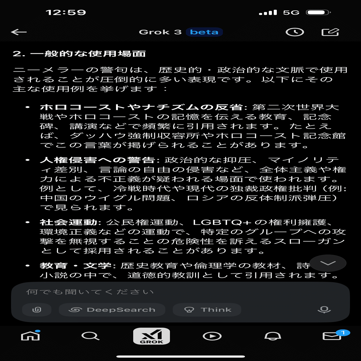 まずは、「ニーメラーの警句」とは何かについて、「中立的な説明」を得るために、AI懐疑派の皆さんが大嫌いなAIツールの一つであるGrok3(どうもこのツールは、AI懐疑派の皆さんもなぜか日常利用しているX(旧Twitter)に内蔵されているようです)に聞いてみます(以下、引用文の太字は筆者が強調したもの)。