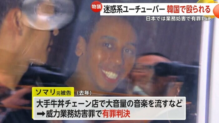 ソマリ元被告は2023年、大阪のホテル建設現場に無断で侵入するなど、連日、迷惑行為を繰り返し、その様子を動画で配信した。また、大手牛丼チェーンの店内で、大音量で音楽を流すなどして、業務を妨害した罪で、有罪判決を受けた。