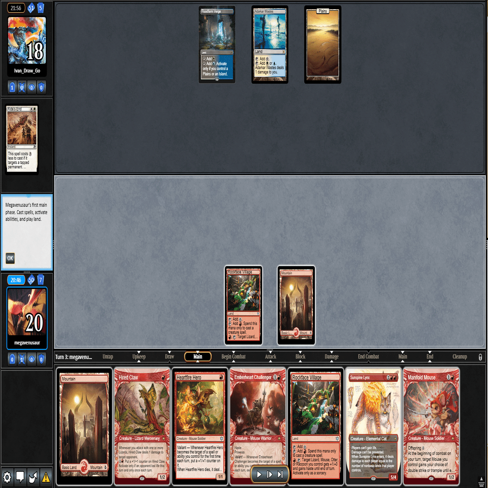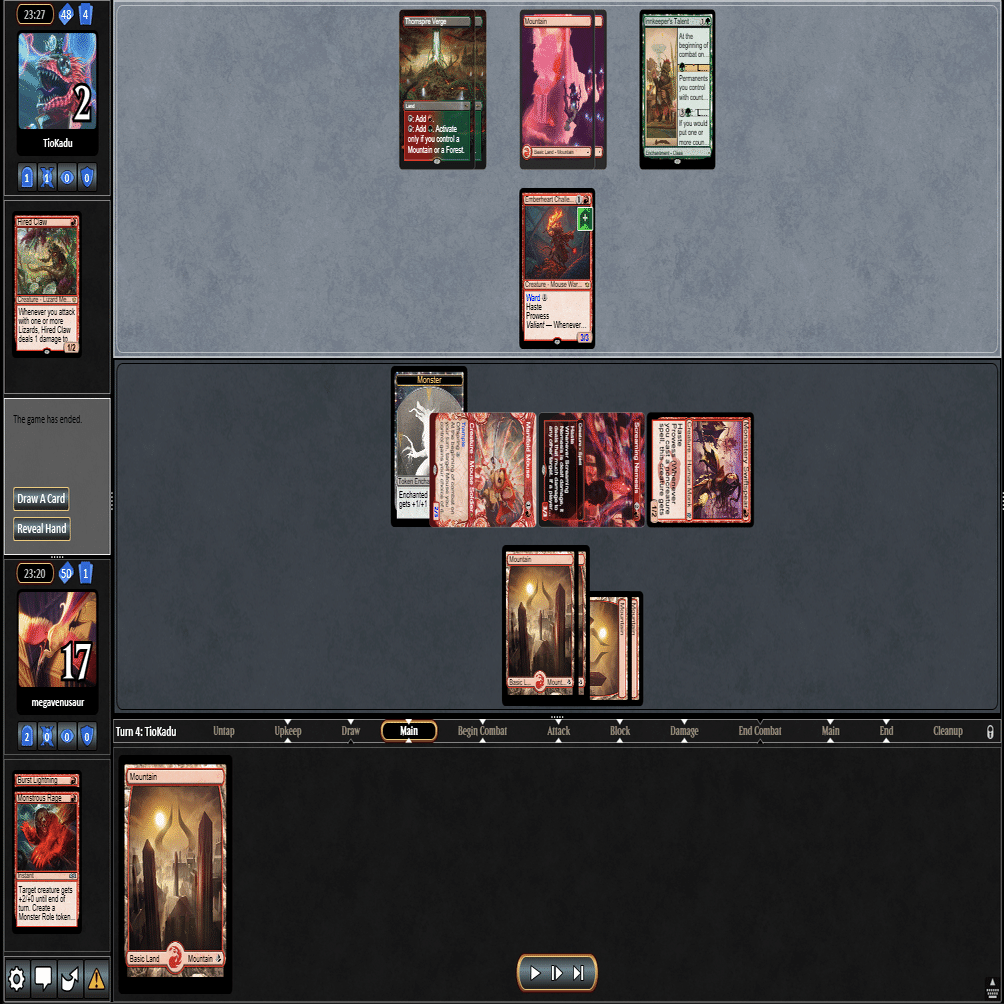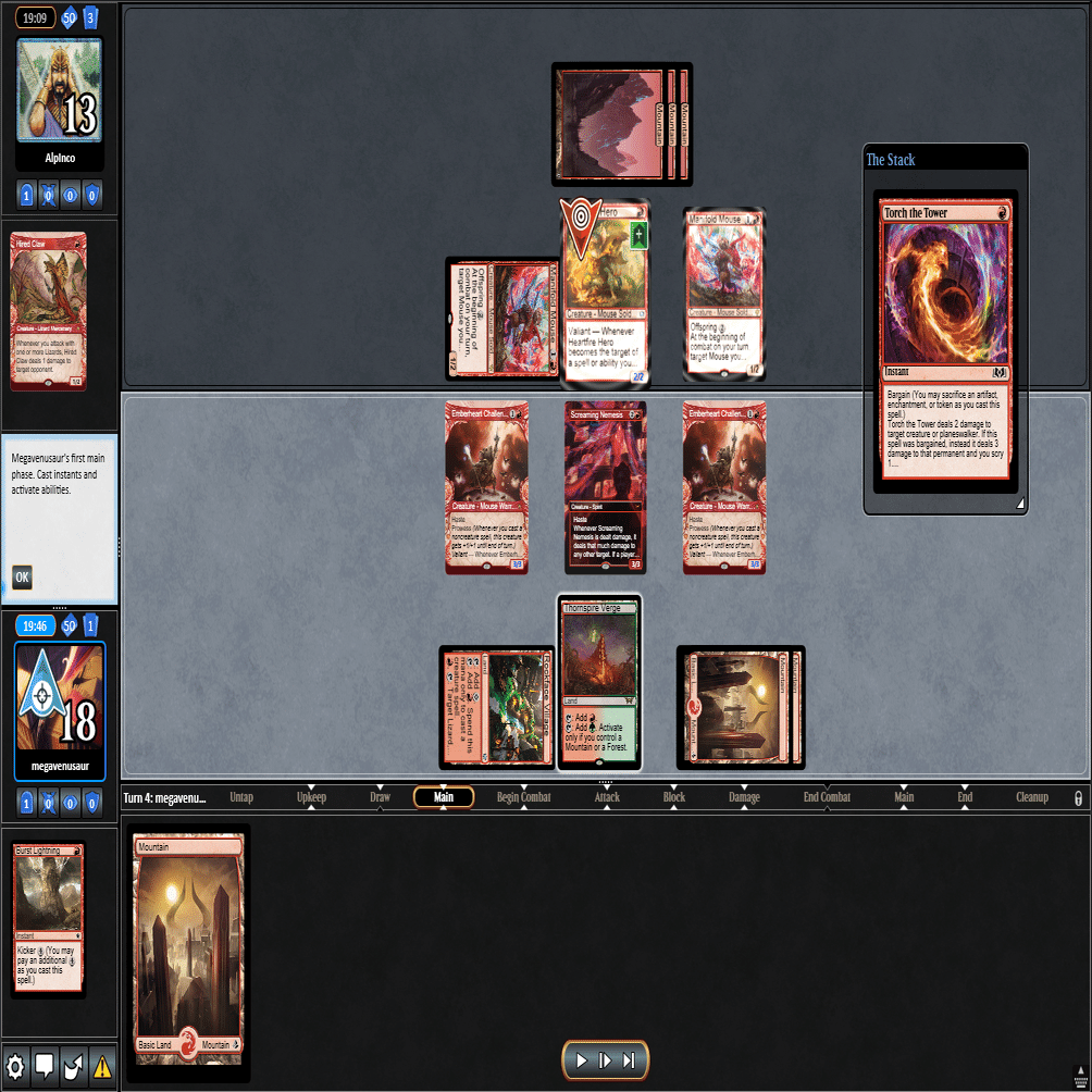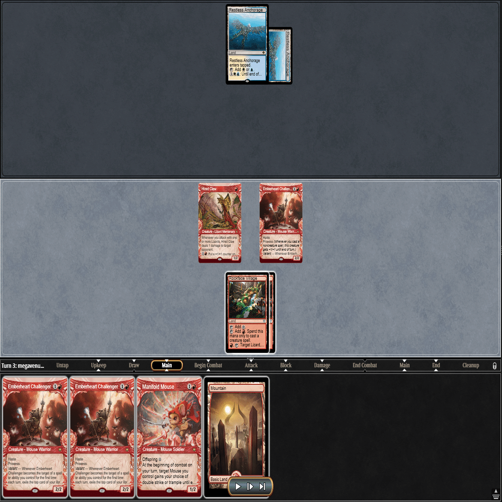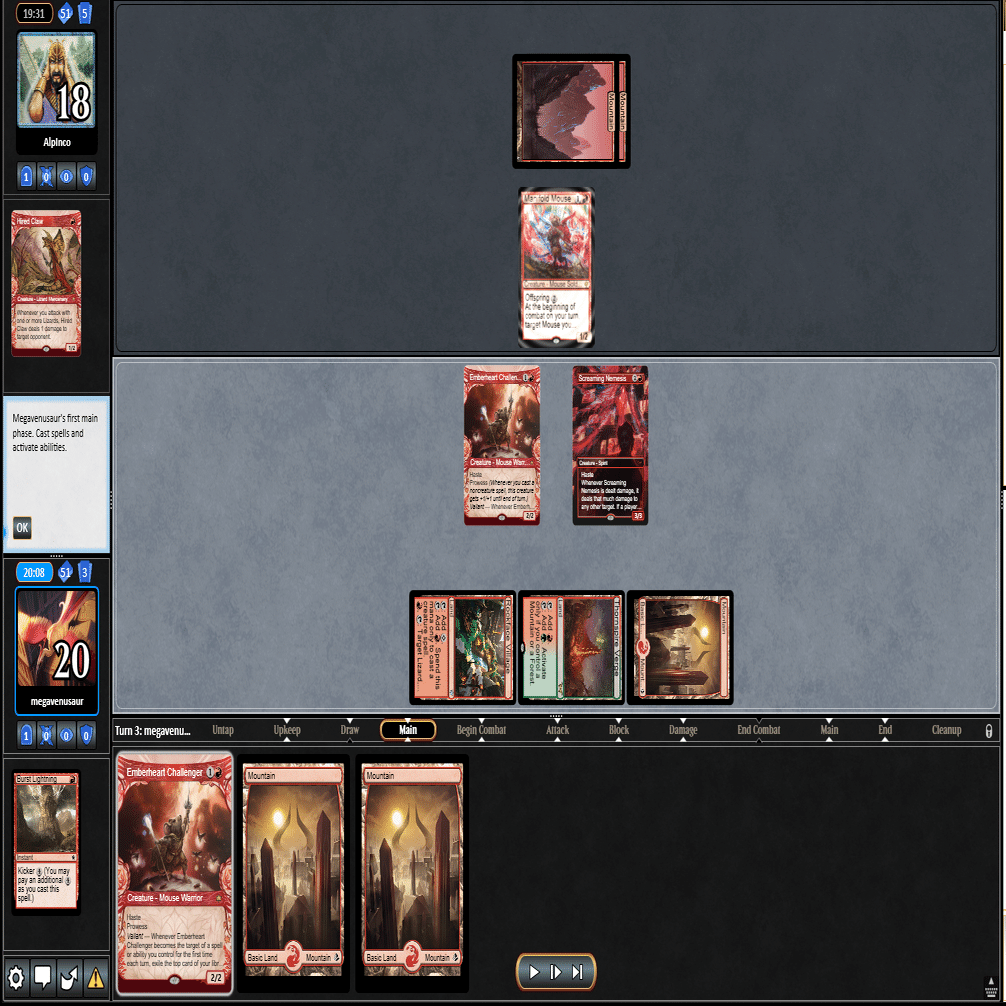 2ターン目に≪熾火心の挑戦者≫、3ターン目に≪山≫を引いてきたこの場面。