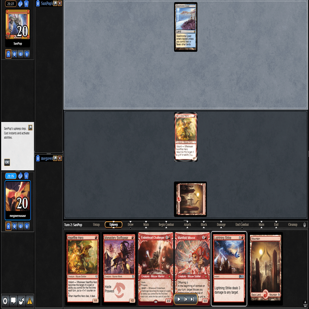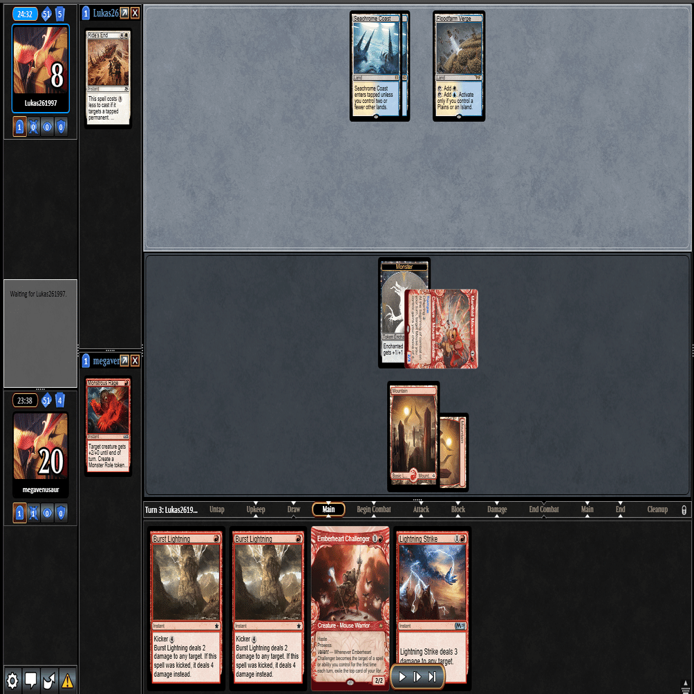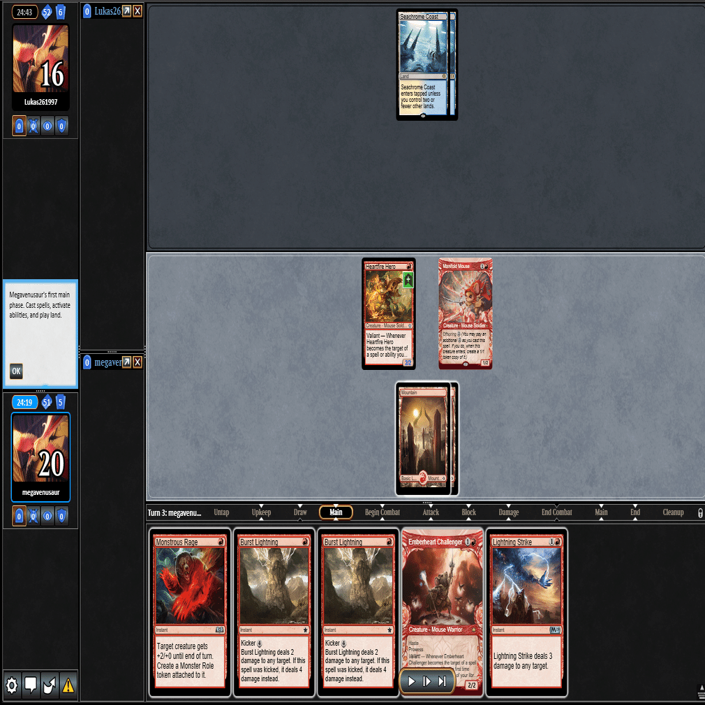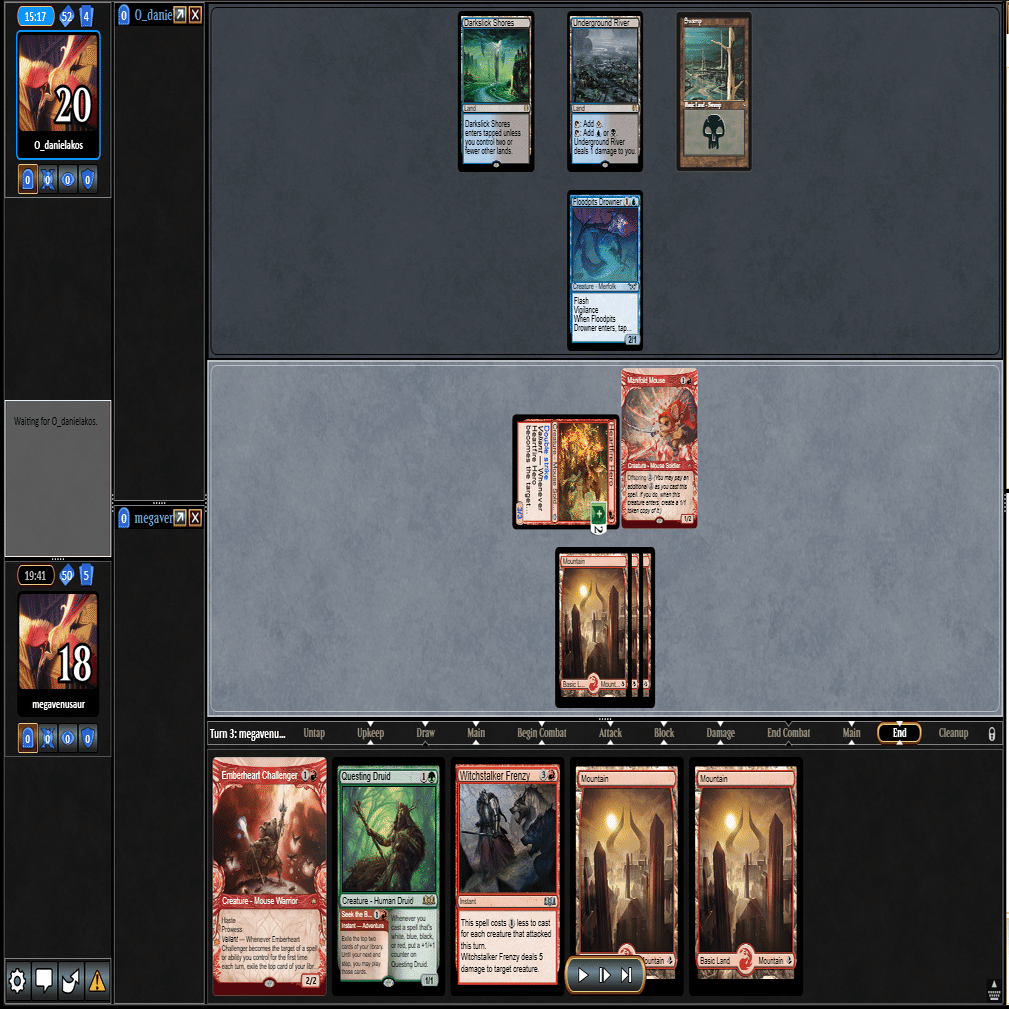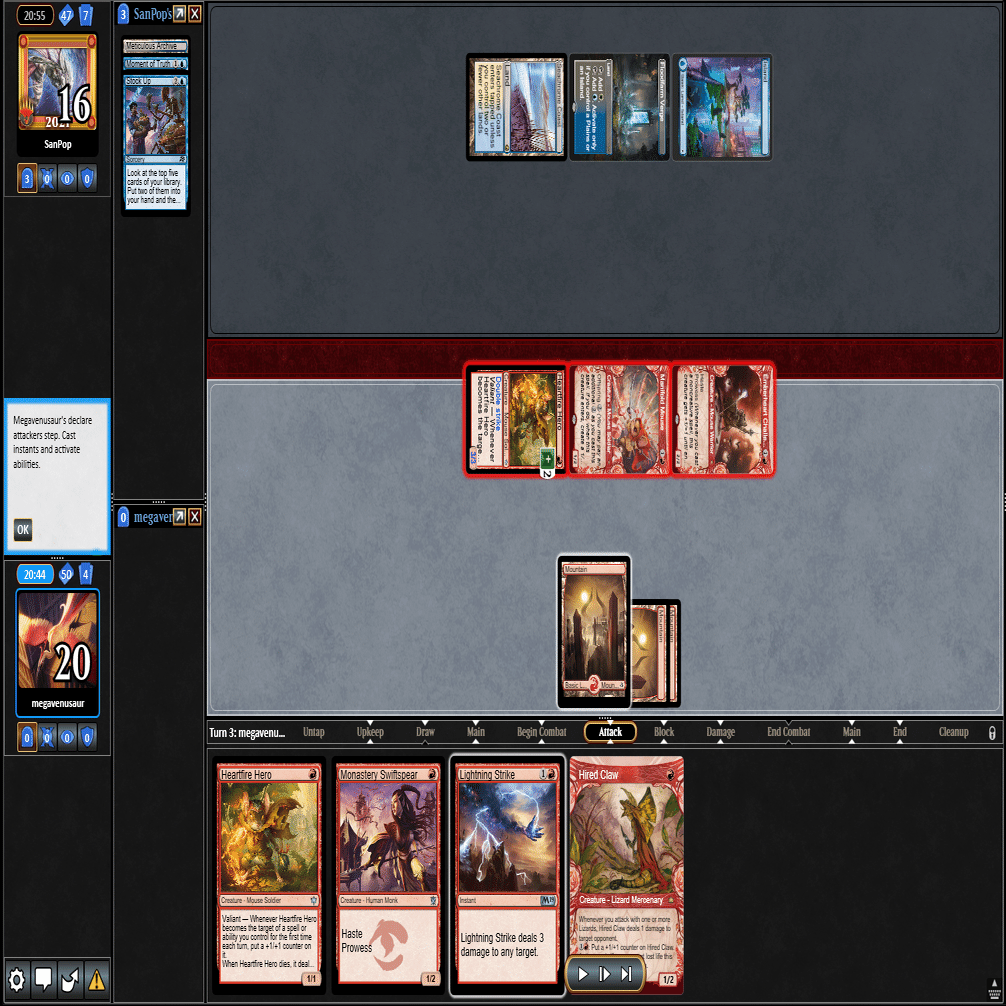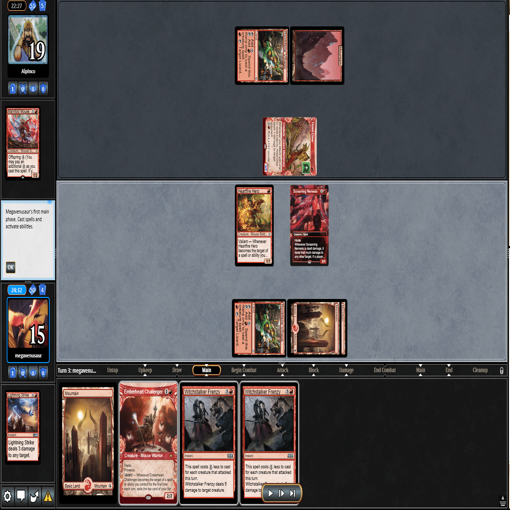 2ターン目に≪熾火心の挑戦者≫、3ターン目に≪山≫を引いてきたこの場面。