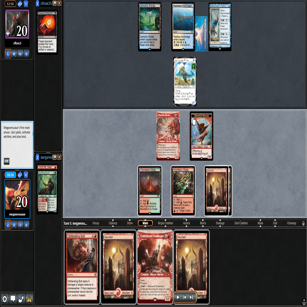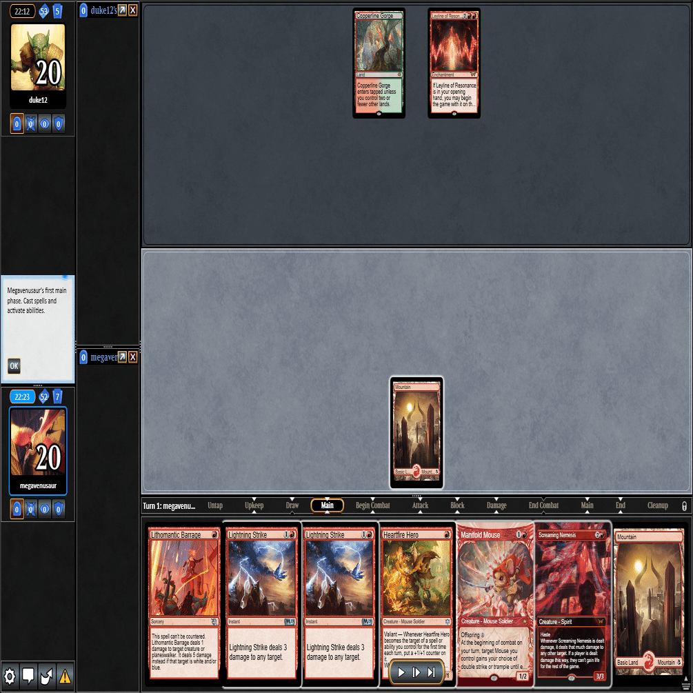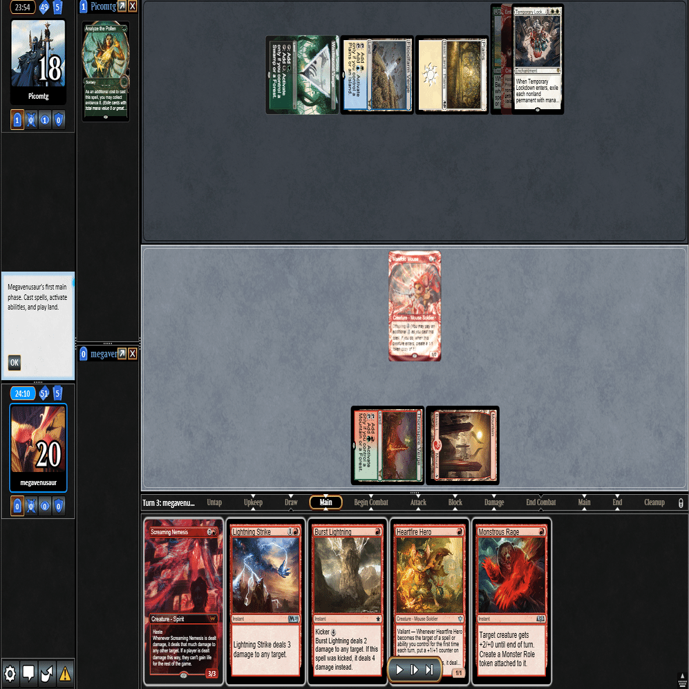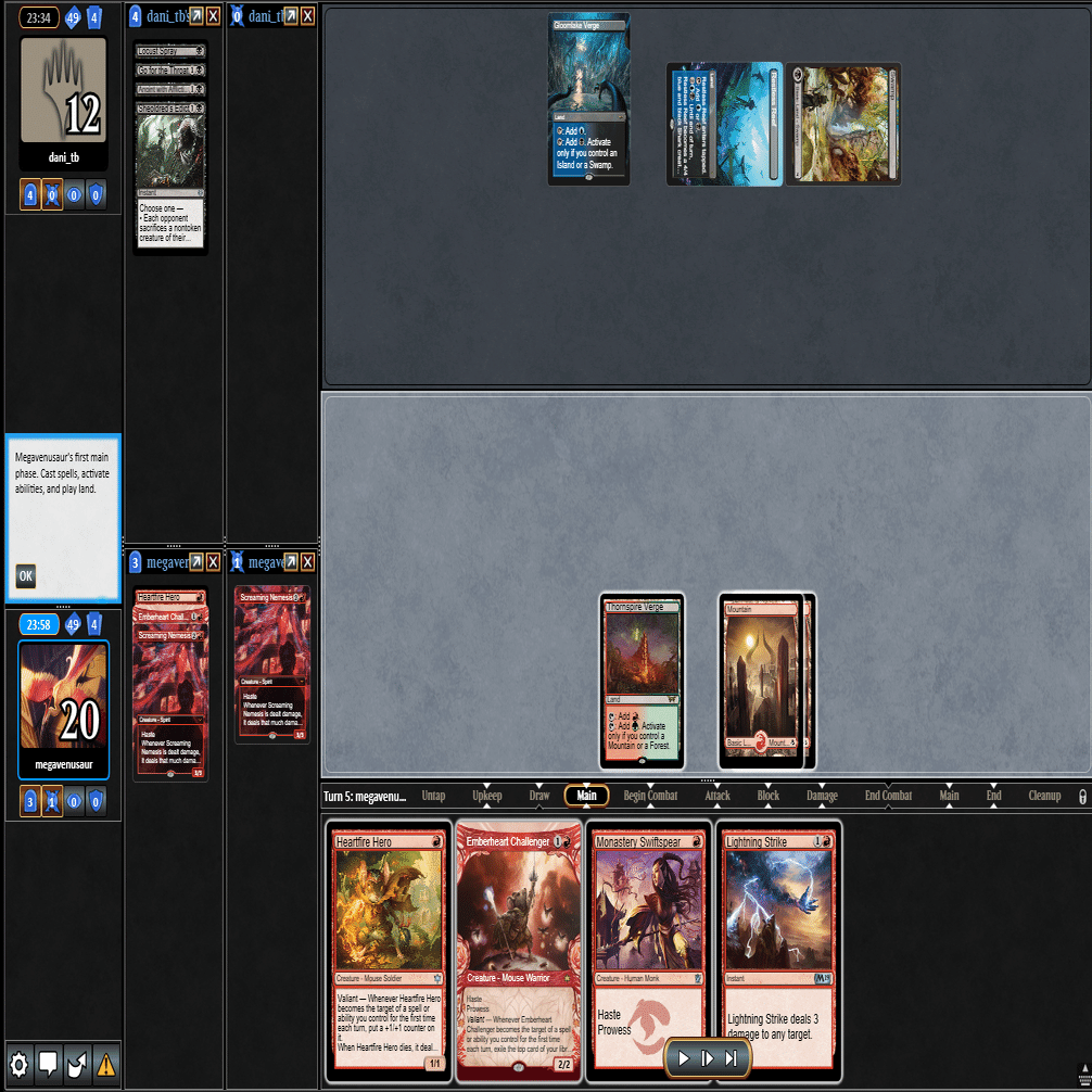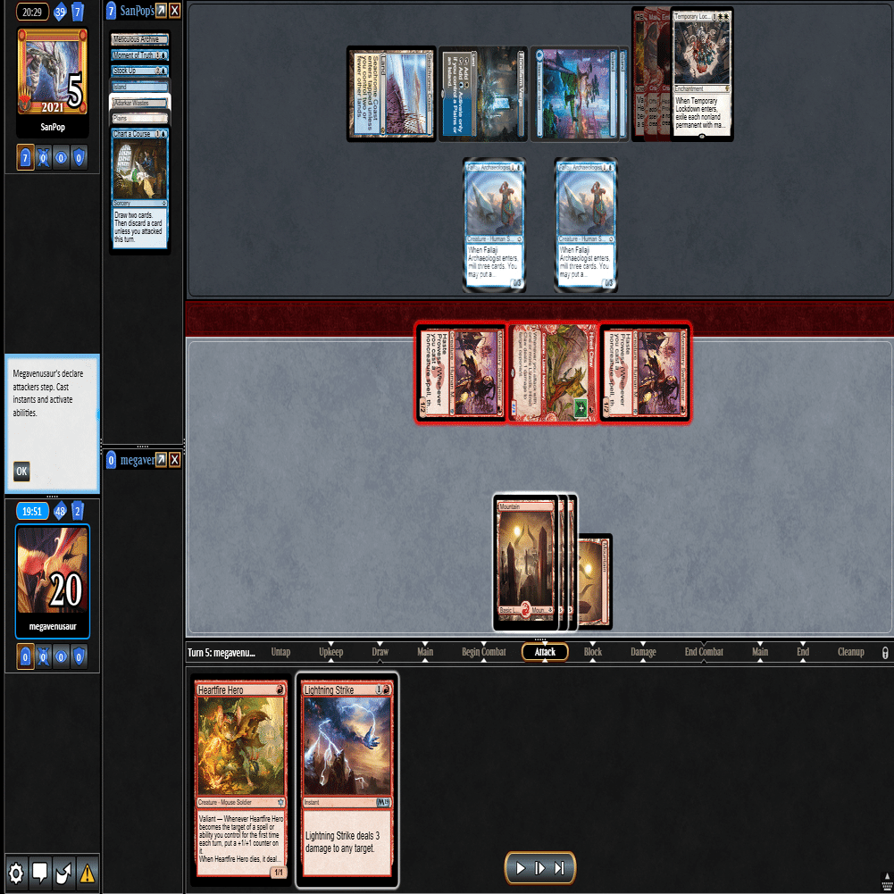 2ターン目に≪熾火心の挑戦者≫、3ターン目に≪山≫を引いてきたこの場面。