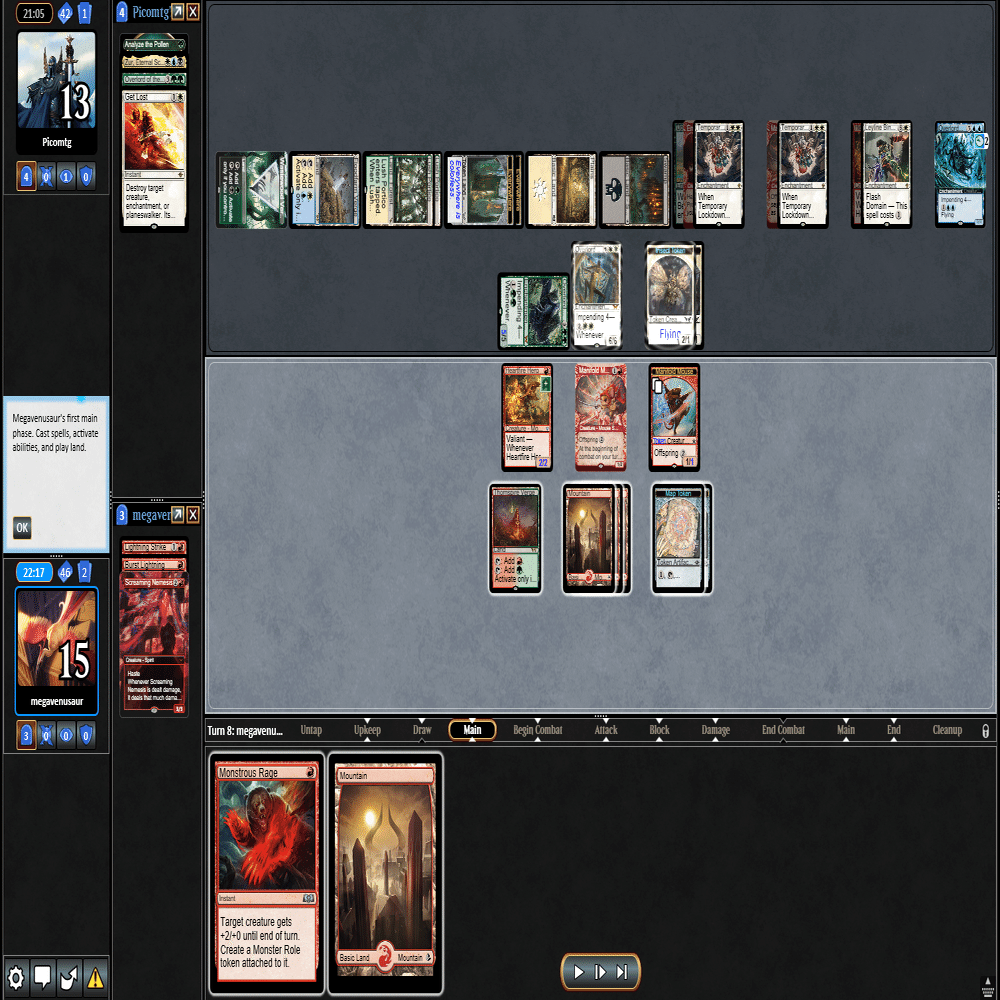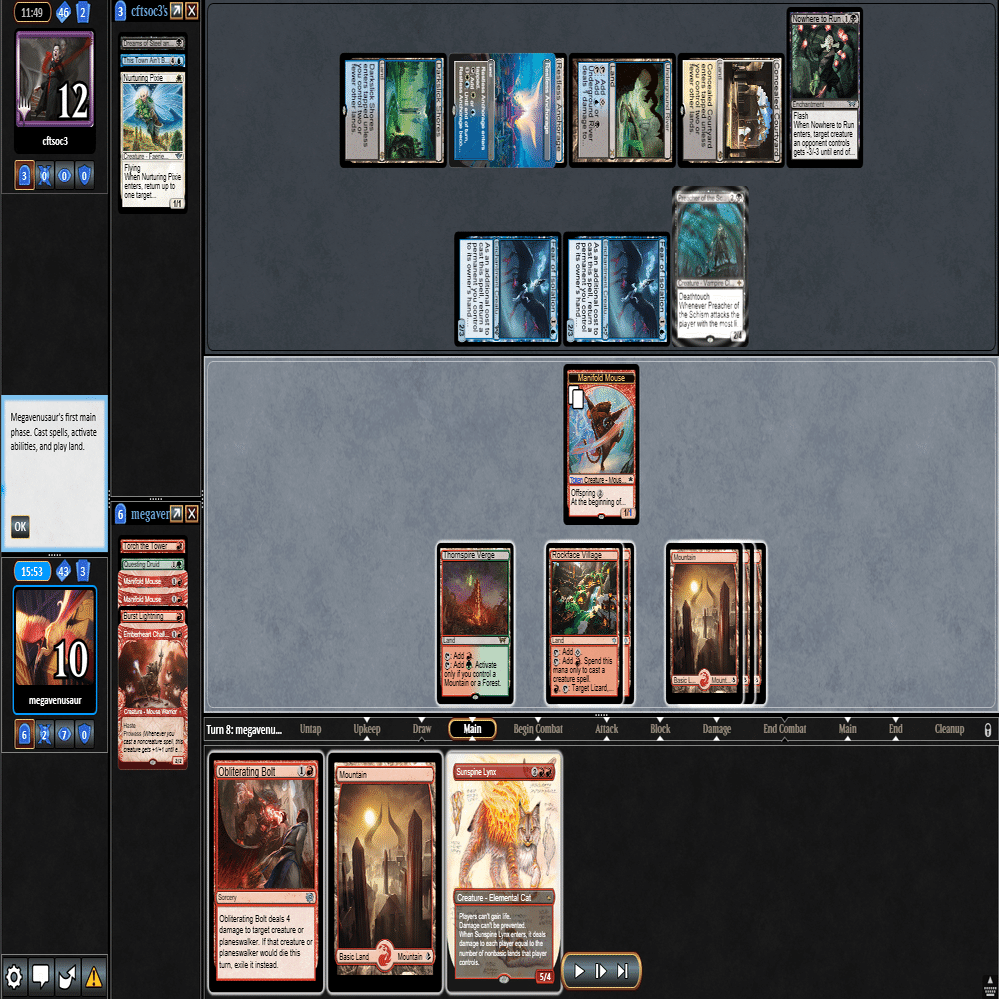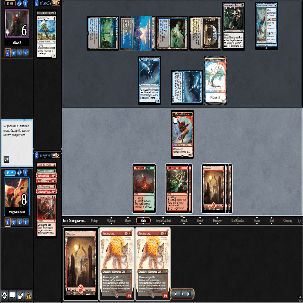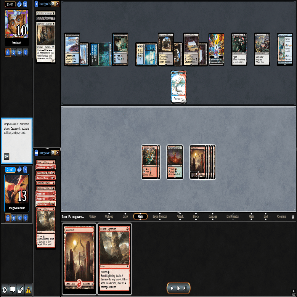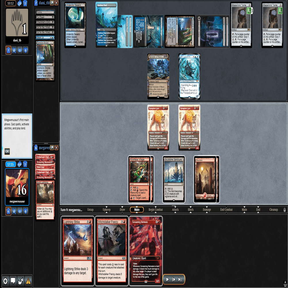 ちょうどよくMOの強豪たちと12回戦を戦ったリプレイが残っていますので、Standard Showcase Challengeのリプレイを振り返りながら、実際に行ったプレイング・サイドボードについて、自分の思考を説明する形式にしました。