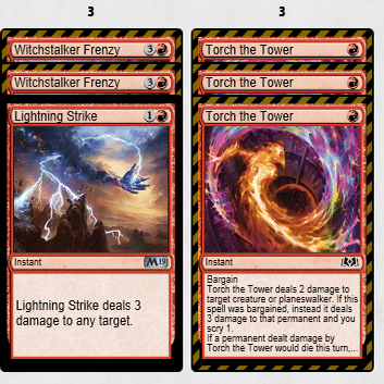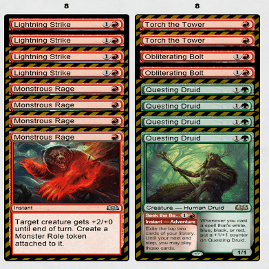 In ≪塔の点火≫3枚、≪抹消する稲妻≫2枚、≪探索するドルイド≫4枚