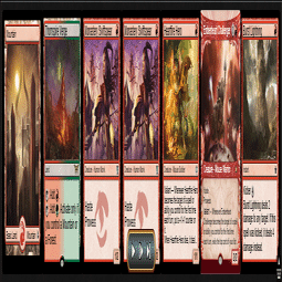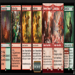 特に、エスパーピクシーやジェスカイ眼魔など、ダメージレースをしつつ≪陽背骨のオオヤマネコ≫を入れるマッチだと≪山≫の枚数が勝敗に直結するため、境界ランドのみの採用にしています。