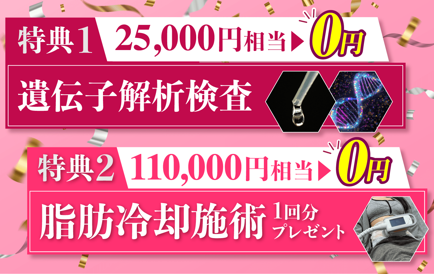 ※脂肪冷却プレゼント…3ヶ月以上のコースのみ適用※契約時の申し出のみ有効※他キャンペーンとの併用不可