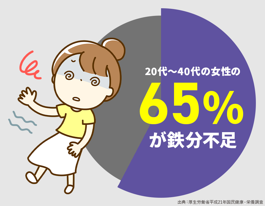 なんと、20代~40代の女性の約65%が「鉄分不足」と言われています。