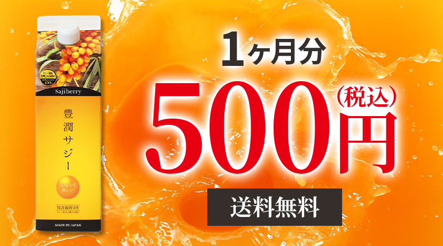 そんな初めての方の不安に応えて、このページから簡単なアンケートに答えるだけで約1ヶ月分の豊潤サジーがたったの500円※に!!