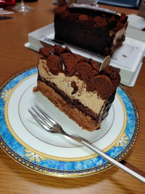 上に乗ってる板チョコまで、異なる食感も楽しい大人のケーキ。