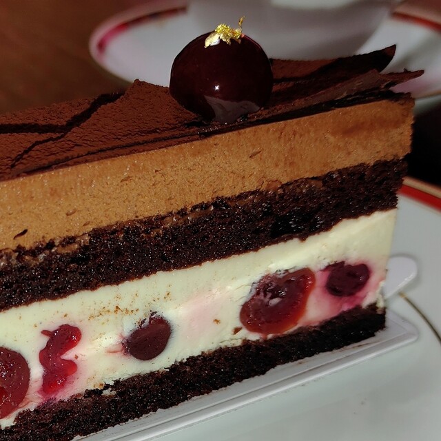 キルシュのクリーム、チョコムース、チョコスポンジと