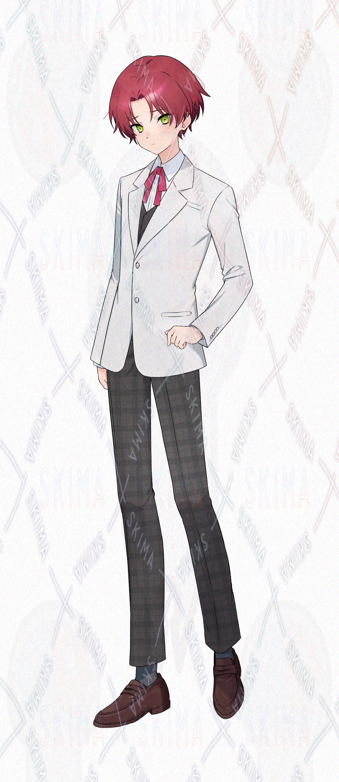 キーワード:少年 中学生 高校生 正装 赤髪