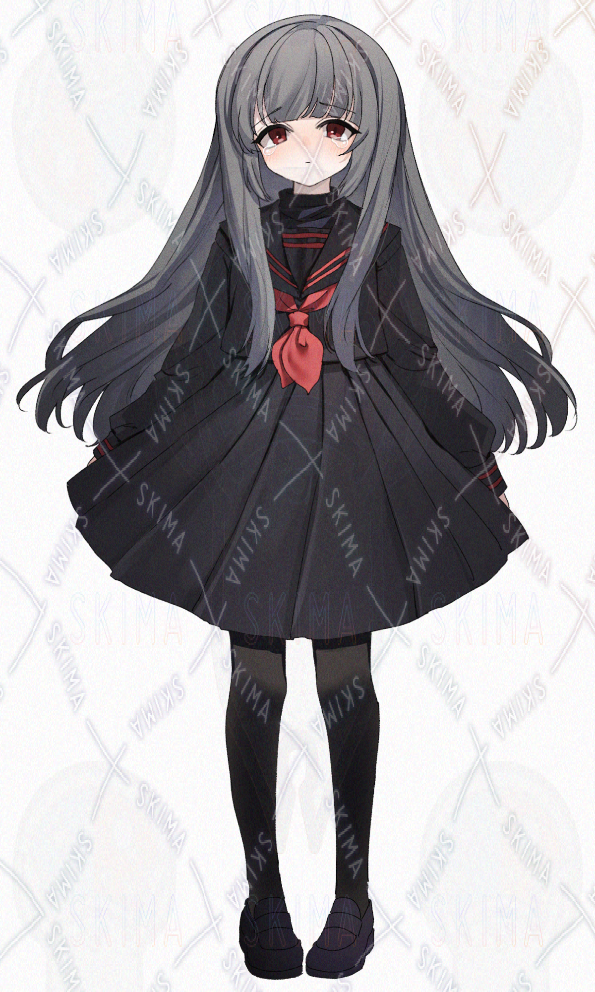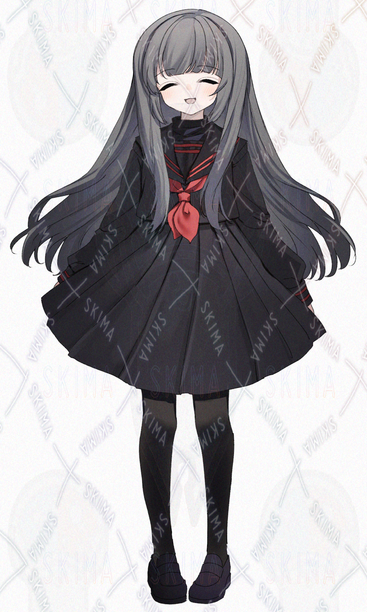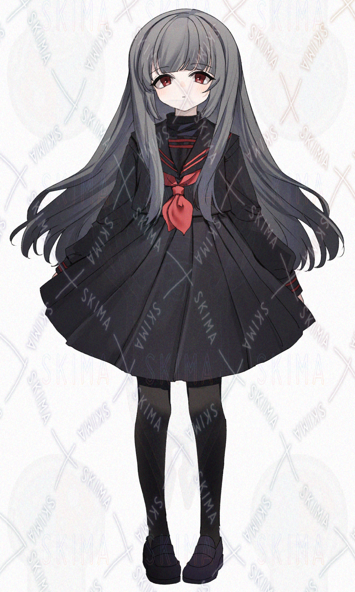 銀髪ロングヘア、黒のセーラー服を着た女の子です。キャラ設定はご自由に。