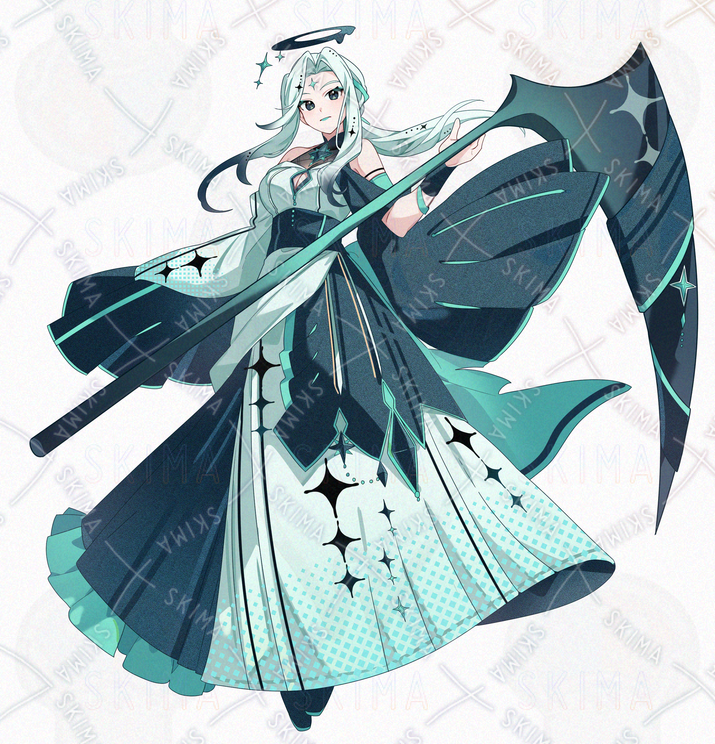 白髪、ドレス、魔法使い、魔女、武器、死神
