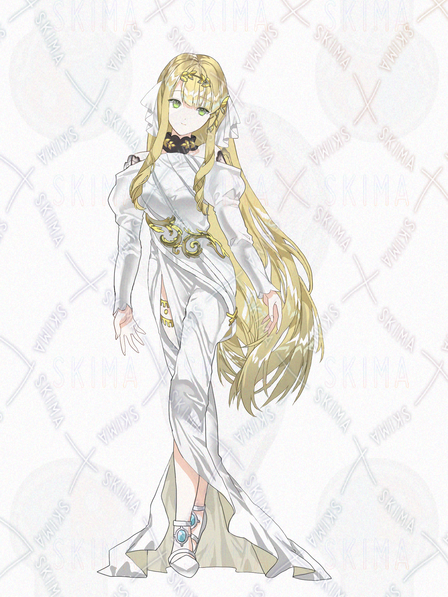 女の子、お姉さん、ファンタジー、女神、金髪、ストレート髪、ドレス、洋風、装飾、綺麗、