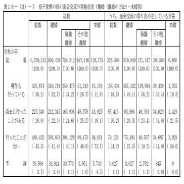 なお余談ですが、協議離婚では取り決めがあった場合、養育費の受け取り率と面会交流の実施率はほぼ同じですが、裁判離婚の場合は面会交流の取り決めが行われても35%しか守られていません。これは、裁判まで行った人の中には子どもに全く会えないのにお金だけ払い続けている人がまあまあいるということを示しており、また面会交流の不履行に関する間接強制という罰金制度は「場所、日時が具体的に審判の内容に入っていないと働かない」というトラップがあり、実質的に機能していないので弁護士を雇って裁判をしている場合はその抜け道を指南されている可能性が高いからと私は考えています。