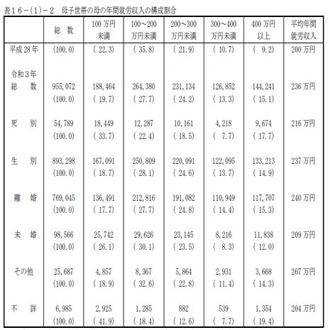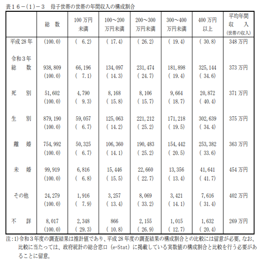 2 . 厚労省 令和3年全国ひとり親世帯等調査