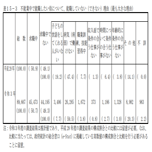 先ほどあげたキャリアの断絶がフルタイム勤務を困難にしている主な原因なのかと思いきやどうやらそんなこともなさそうで、パートとフルタイムの区別はついてはいませんが、就労している人の約7割がそのまま仕事を続けたいといっています。この中にはおそらくパートの人も多分に含まれます。