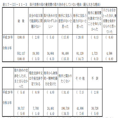 よく、母子家庭の養育費受取率が30%だと言われていますが、その大きな原因は取り決めを行なっていないからであって取り決めを行なっていない最大の原因は「相手と関わりたくないから」です(2)。なおDV事案は4.8%です。