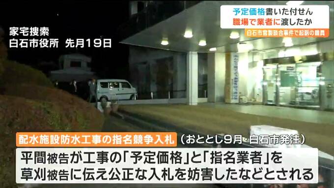 2023年宮城県白石市が発注した配水施設の公共工事をめぐる談合事件で、逮捕された市の水道事業所の職員と地元業者の男が起訴されました。職員は、工事の「予定価格」と入札に参加する「指名業者」を書いた付せんを職場である水道事業所で業者の男に直接渡していたことが分かりました。