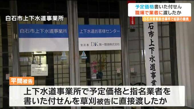 平間被告は、職場の水道事業所で予定価格と指名業者を書いた付せんを草刈被告に直接渡していたことが新たに明らかになりました。