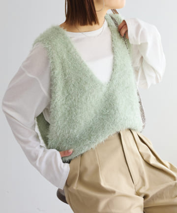 【リバイバル】ミックスフェザーヤーンクロップド丈ベスト
