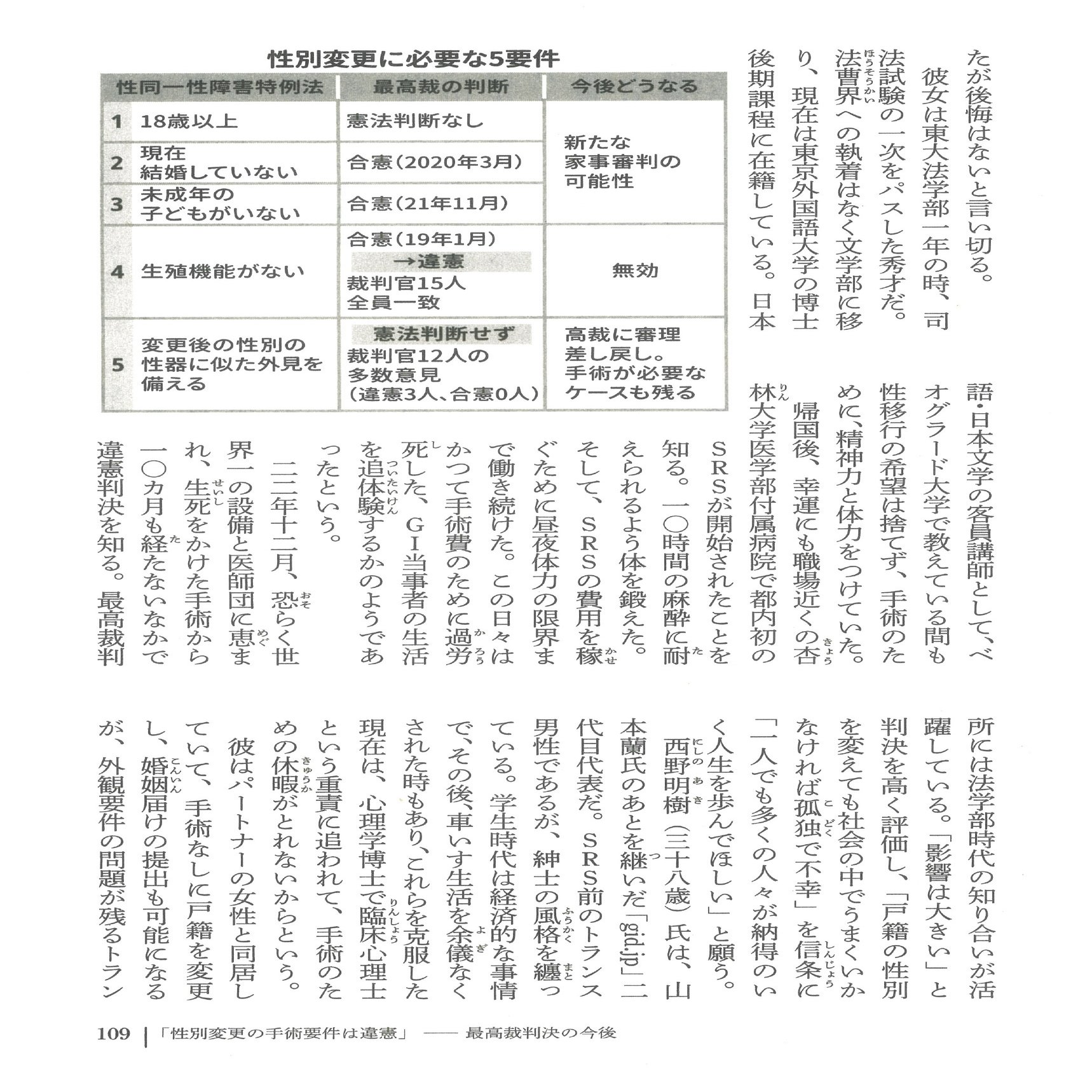 公明党は5号要件のより制限的ではない見直しを表明した。外観要件のより制限のない見直しとは何を指すのか。ホルモン療法による陰茎陰嚢の変化とでもいうのだろうか。