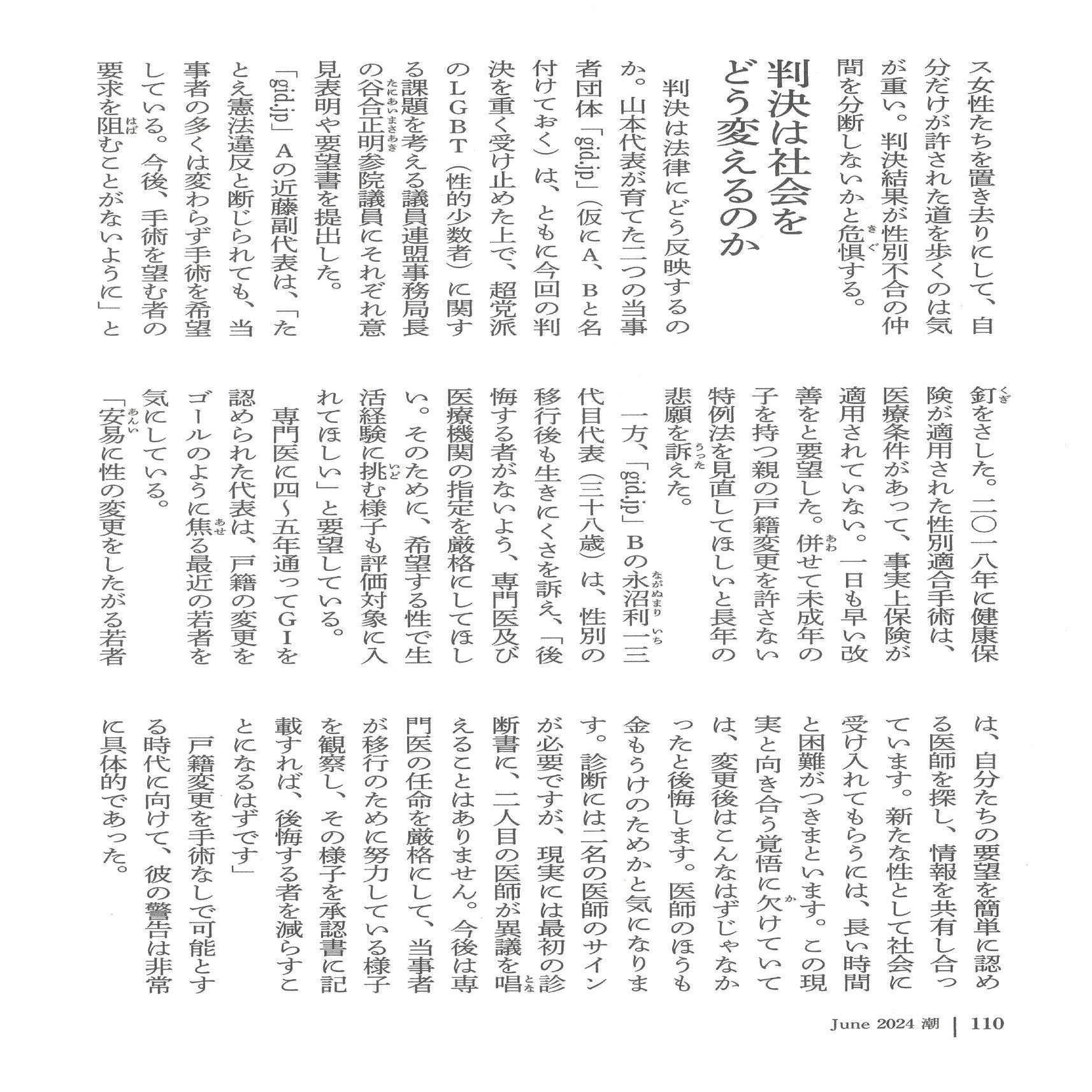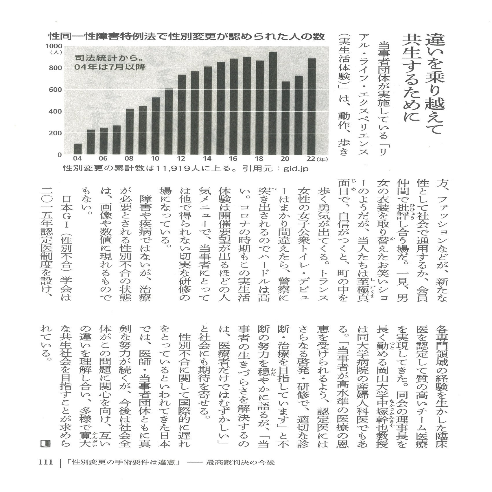 性同一性障害特例法は、性同一性障害という障害を越え、同じ社会を生きていくためのものなのだから。