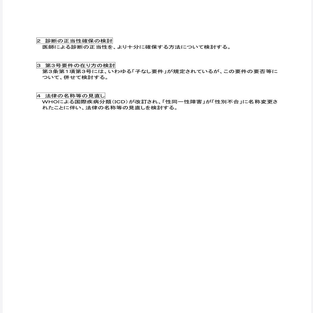 自民党は7月の高裁決定の前に手術要件を削除の上で新要件を設ける検討を始めている。将来的に違憲判断が下される懸念を考えてのことだが、性同一性障害の法的定義・社会への信頼に関わることでもある。外観要件保持の上新要件創設で検討してほしい。