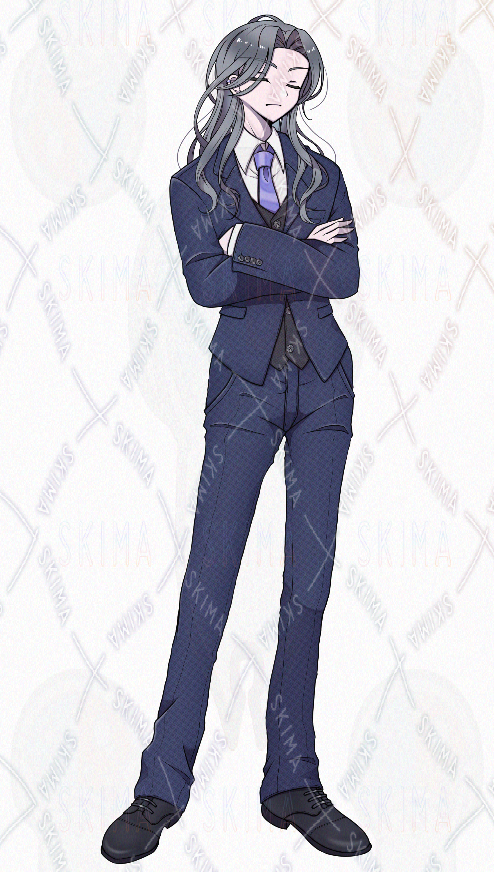 銀髪/スーツ/ロン毛/太眉/青年【表情10種類】