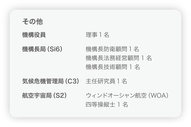 ・2020年(令和2年)8月 気候変動対策局(MAC2)、海上運輸開発局(MU4)、機構長室(Si6)が発足