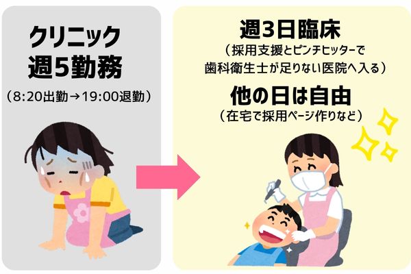 あとは在宅でDHが足りないクリニックの採用サポートしてるの