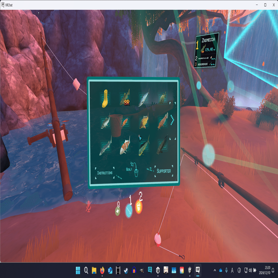 3.魚がヒットしたら音楽が鳴るのでEキーor左マウス押しっぱなし(デスクトップ時)