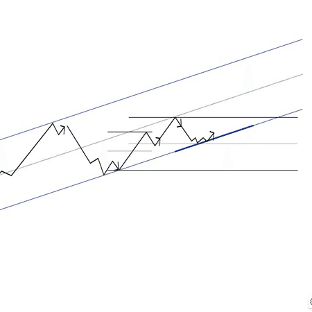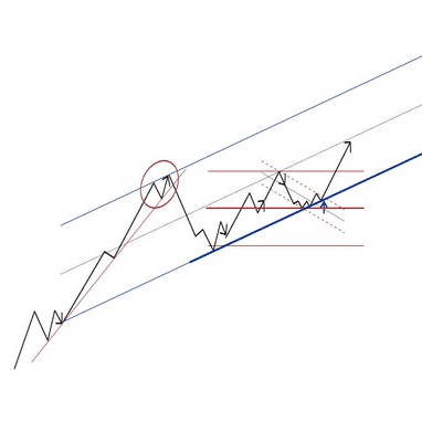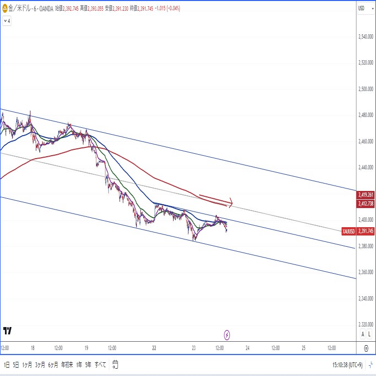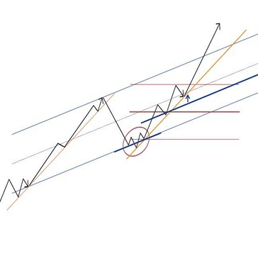 トレンドラインの角度で斜めチャネルを当てる。