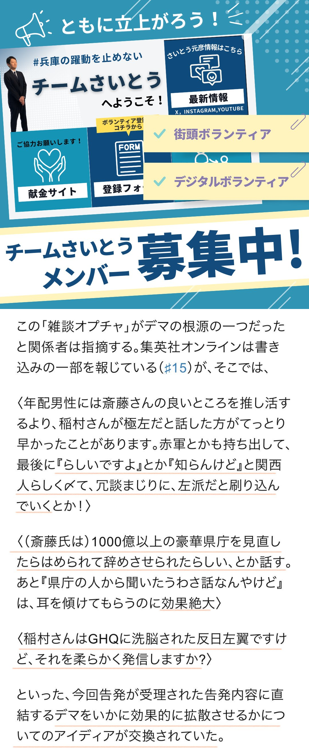 ▽ 調査への斎藤氏や片山氏らの関与 |
