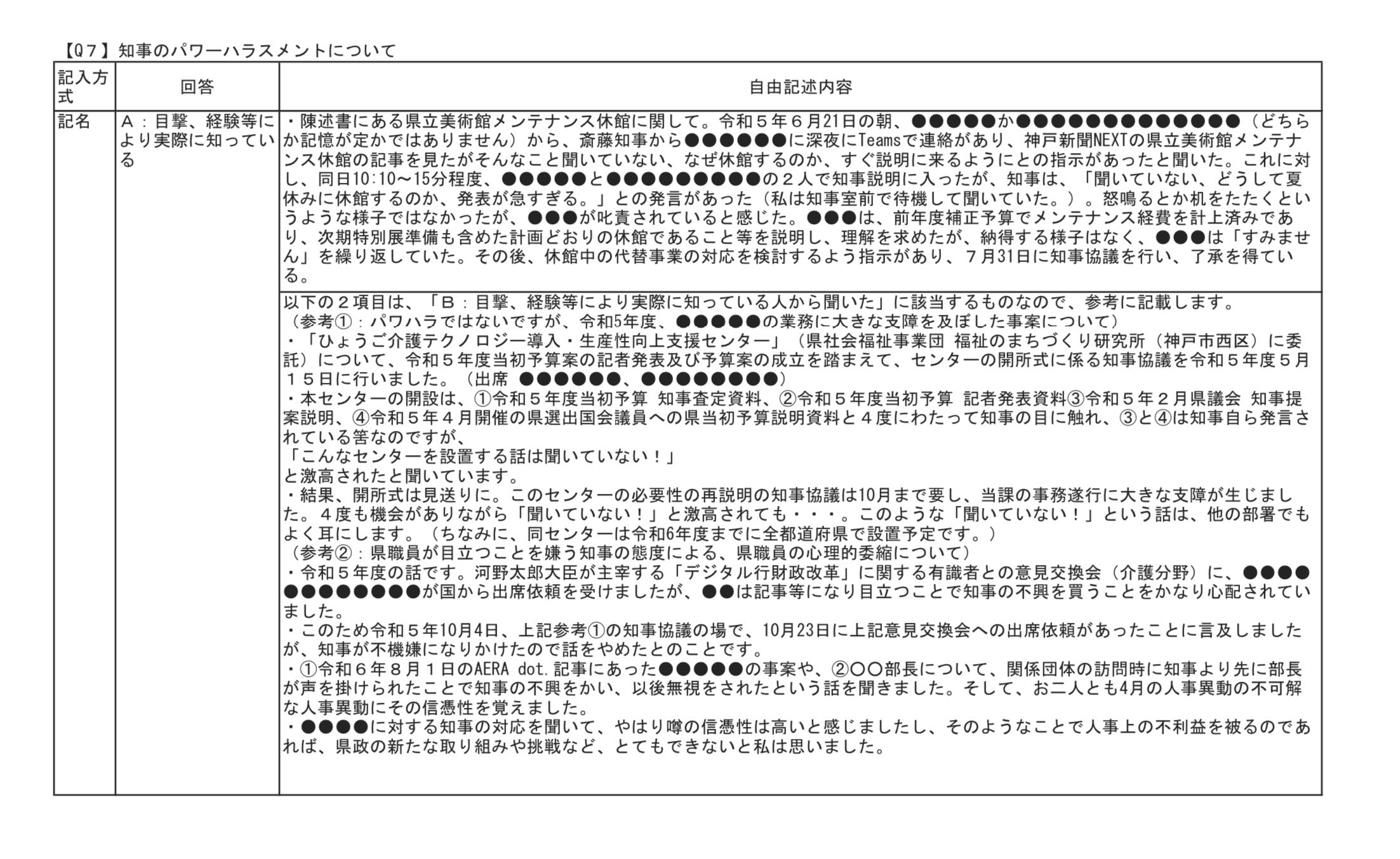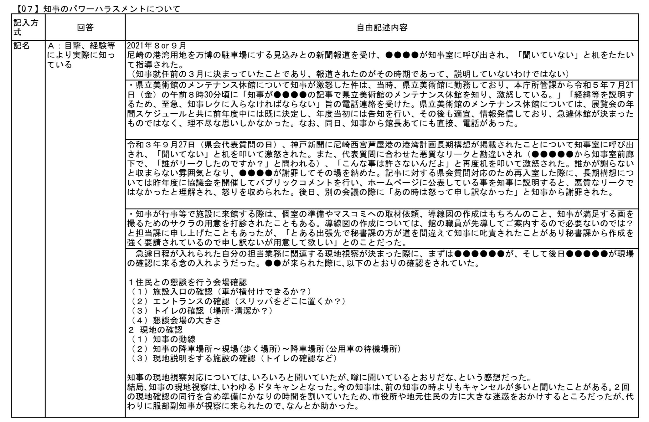 斎藤氏は3月27日の記者会見で文書を作成・配布した職員を「公務員失格」「うそ八百」の言葉で非難したが、文書には数多くの真実と真実相当性のある事項が含まれており、「うそ八百」として無視することはできず、むしろ、県政に対する重要な指摘をも含むものだった。斎藤氏の発言は職員に精神的苦痛を与え、職員一般を委縮させ、勤務環境を悪化させるもので、パワハラに該当する行為だった。 |