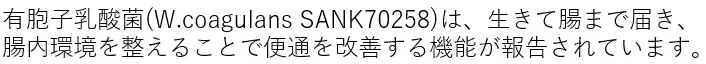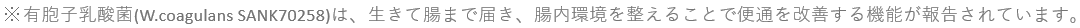 ※有胞子乳酸菌は、生きて腸まで届き腸内環境を整えることで便通を改善する機能がある。